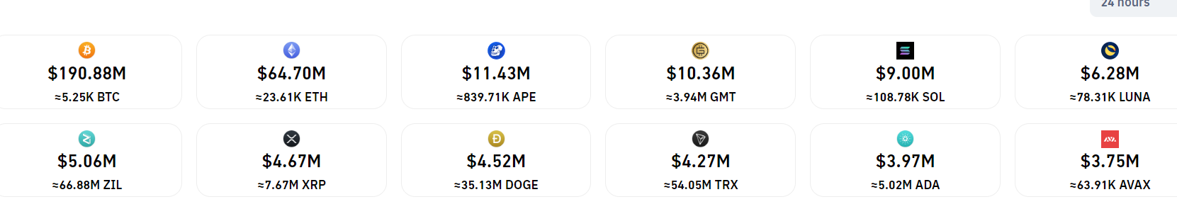 加密货币巨头的亏损相对较低。追踪 Solana 的 SOL 的期货亏损 900 万美元,其次是 Terra 的 LUNA,亏损 670 万美元。尽管这两种代币在过去 24 小时内跌幅高达 10%——这表明抛售是由现货资产主导的。